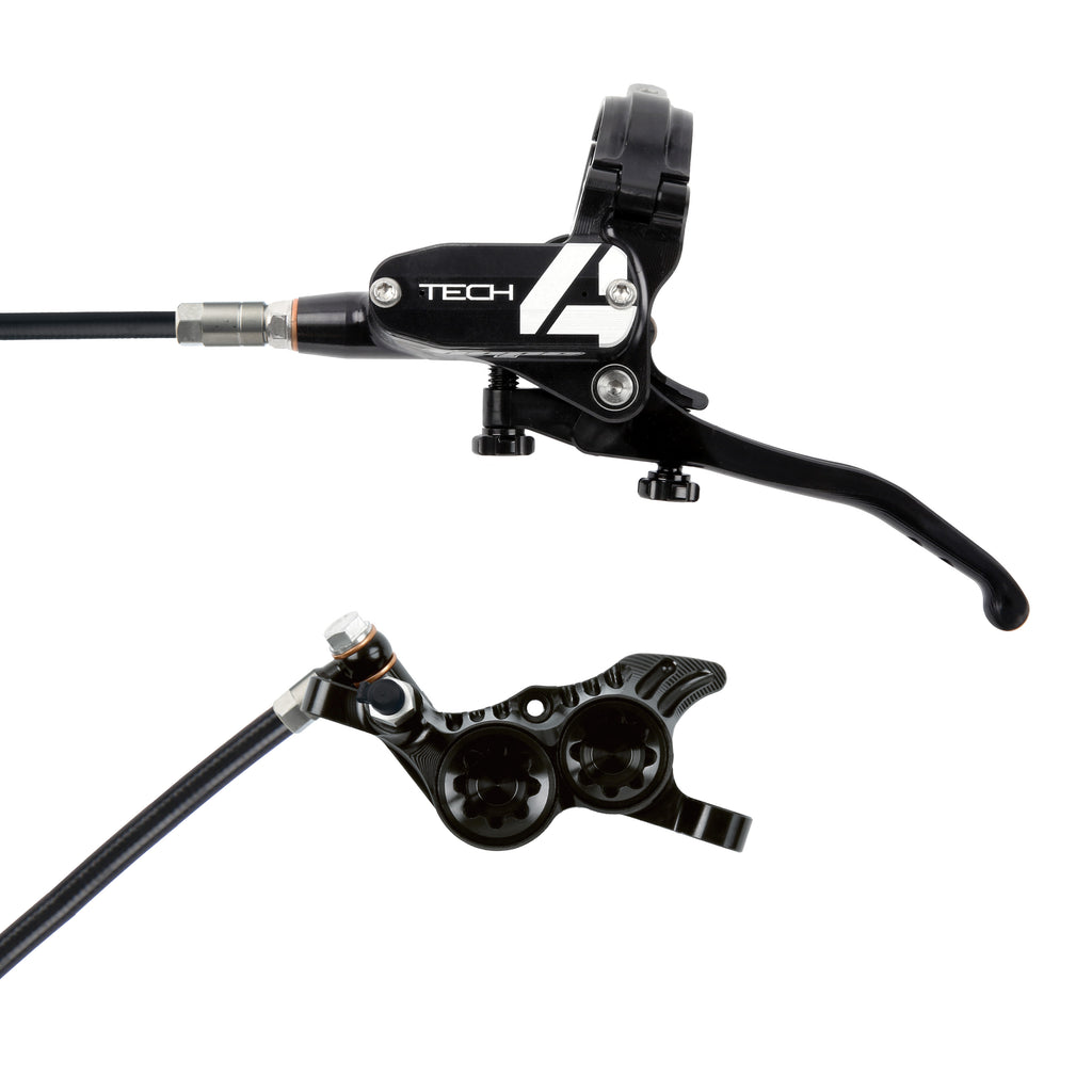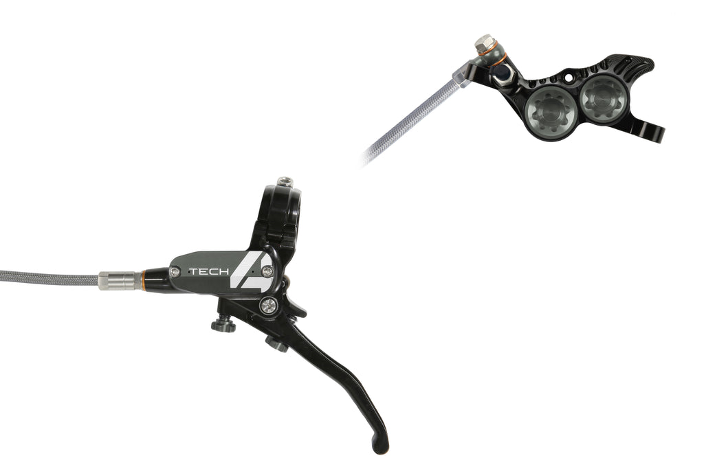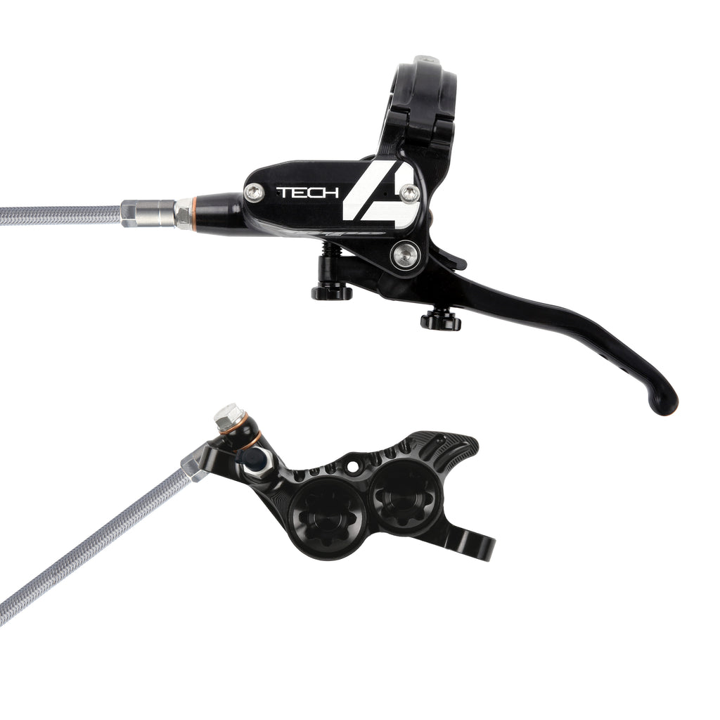 The Tech 4 V4 builds on Hope's 25+ years’ experience designing and manufacturing hydraulic brake systems. The Tech 4 uses all new internal sealing for reduced friction and the pivot spins on roller bearings, allowing the spring rate to be reduced. The lower spring rate in turn gives a lighter lever action, reducing rider fatigue and keeping the legendary feel and modulation.